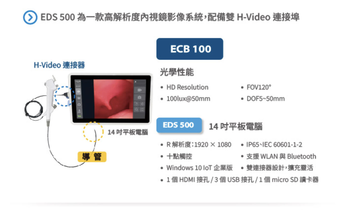 影像系統相容性:可連接 MiiS EVS 700 / EDS 500 影像主機