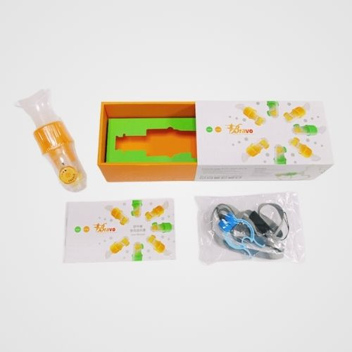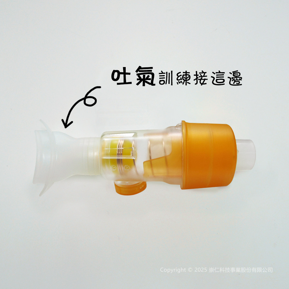 - [吸氣肌訓練]:先將阻力調到適合自己的強度,將嘴巴對好咬嘴後將嘴巴放置於呼吸肌訓練器吸器端,慢慢吐氣,將肺部的氣體慢慢吐乾淨後捏住鼻子,用力吸氣。